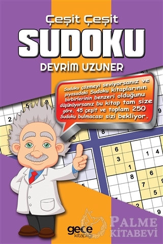 Bu kitap, piyasadaki Sudoku kitaplarından farklı. 45 çeşit ve toplamda 250 sudoku bulmacası, sizleri bekliyor. Ayrıca bu kitapta, diğer bulmaca türleri için de farklı ipuçları bulacaksınız. İyi eğlenceler.