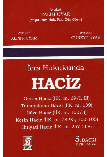 Geçici Haciz (İİK. m. 69–1, III) Tamamlama Haczi (İİK. m. 139) İlâve Haciz (İİK. m. 100–11) Kesin Haciz (İİK. m. 78–95; 100–105) İhtiyati Haciz (İİK. m. 257–268)