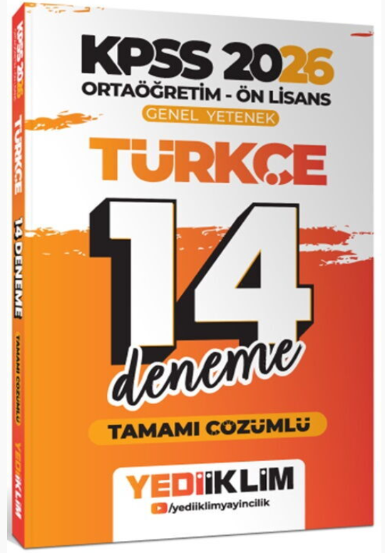 Yediiklim Yayınları 2026 KPSS Ortaöğretim Ön Lisans Genel Yetenek Türkçe Tamamı Çözümlü 14 Deneme